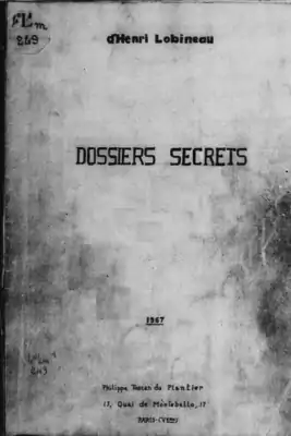 - Lobineau H. Dossiers secrets / d'Henri Lobineau. — Paris: P. Toscan du Plantier, 1967. — 25 p. Архивная копия от 25 апреля 2012 на Wayback Machine (копия (недоступная ссылка)) — сканированный текст подлинника «Тайных досье Анри Лобино».