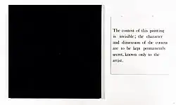 Именно эта серия монохромных картин отличается от монохромных картин, обычно производимых в области пластических искусств, наличием текста, который её сопровождает. Этот текст гласит: «Содержание этой картины невидимо: характер и размер содержания должны постоянно храниться в тайне, известной только художнику» (англ.: The content of this painting is invisible: the character and dimension of the content are to be kept permanently secret, known only to the artist)"[2]. В то же время, она является отсылкой к истории монохромной живописи и к Чёрному квадрату Малевича (1915), а также ответом Мела Рамсдена на картины Эда Рейнхардта[3] (1913—1967), американского художника и теоретика, предшественника концептуального искусства и минимал-арта.
