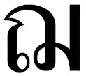 - -ํ — Никхахит тайск. นิคหิต или Ятнамканг тайск. หยาดน้ำค้าง, надстрочный. Анусвара (носовой призвук в конце гласного звука либо назализация гласного), в контакте со знаком лакханг, никкхахит образует финаль -ам, в контакте со знаком пинтуи — краткий гласный «ы».
