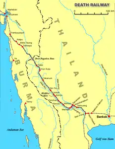 Тайско-Бирманская железная дорога, также известная как Дорога Смерти — железная дорога между Бангкоком (Таиланд) и Рангуном (Бирма), построенная Императорской Японией в ходе Второй мировой войны. Протяжённость дороги составила 415 километров (из них почти 13 км (8 миль) мостов). Дорога использовалась для снабжения японских войск в «Бирманской кампании».