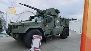 Многоцелевой бронеавтомобиль повышенной проходимости, армейский автомобиль-внедорожник с колёсной формулой 4х4[15]. На нём установлена комбинированная защита из керамической брони, под ней — броневая сталь. Полная масса — более 15 тонн, максимальная скорость — 105 км/ч.