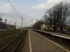 На станции 3 пути, одна боковая платформа, расположенная у здания вокзала, и одна островная. На островной платформе производится посадка-высадка пассажиров только из электропоездов, прибывших на второй путь. Из электропоездов, прибывших на первый путь, посадка-высадка производится только на боковую платформу.