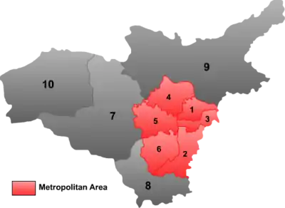 | 5 | Район | Ваньбайлинь | 万柏林区 | Wànbǎilín qū | 500 000 | 305 | 1639 | |
