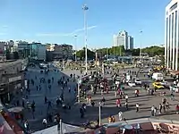 Большое широкое здание, построенное в 1950—1969 годах — Культурный центр им. Ататюрка (Atatürk Kültür Merkezi). Вдоль культурного центра Ататюрка начинается улица Гюмюшсую, ведущая к дворцу Долмабахче. Справа находятся консульства Германии и Японии. Слева — военная больница и технический университет. Все эти здания датируются XIX столетием.