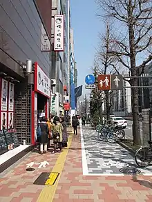 С 1994 года японское законодательство требует, чтобы здания площадью более 2000 м² устанавливали и обслуживали тактильные покрытия рядом с лестницами, пандусами, эскалаторами и основными проходами[10]. Школы, больницы, театры, арены, общественные центры, выставочные залы, универмаги, отели, офисы, многоквартирные дома или дома престарелых площадью менее 2000 м² должны затрачивать разумные усилия на установку и обслуживание тактильного покрытия внутри здания, но его установка не обязательна. Первоначальный закон был заменен другим законом в 2006 году[11].