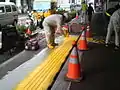 Низкопрофильные линейные направляющие блоки установленные на оживленных пешеходных переходах в Японии.