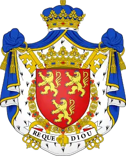 Описание герба: De gueules, à trois lions d'or, armés, lampassés et couronnés d'azur. |