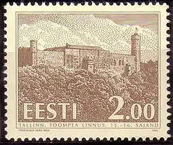 В сентябре 1941 года в Тарту были выпущены местные марки оригинального рисунка с доплатой в фонд восстановления. На марках изображены архитектурные памятники Эстонии, в том числе замок Тоомпеа и вид на Старый город Реваля (Таллина) (Sc #NB1, NB4).