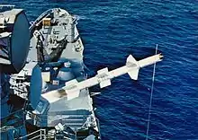 После пуска твёрдотопливного ускорителя ракета сходит с пусковой установки и продолжает двигаться в направлении, заданном первоначальным положением направляющей. Гироскопическая система обеспечивает в течение фазы разгона отклонение от первоначального направления не более 5°. Это необходимо, чтобы в конце разгонного участка ракета оказалась в луче радара наведения AN/SPW-2, который на маршевом участке траектории будет наводить ракету на цель[7]. Соответственно, луч радара наведения должен быть достаточно широким (не менее 10°), поэтому при близком к горизонтальному разгонном участке ракеты возникают помехи, связанные с отражением сигнала радара от поверхности воды. Это накладывает ограничения на угол подъёма направляющей при пуске. Ракета может быть пущена при углах возвышения в пределах 25-55°[8].