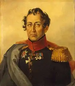 ![]() Портрет Александра Ивановича Талызина мастерской[2] Джорджа Доу. Военная галерея Зимнего Дворца, Государственный Эрмитаж (Санкт-Петербург) | |