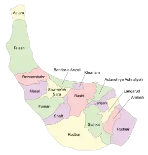 Шахрестан разделен на четыре округа: Центральный округ, Асалем, Хавик и Карган Руд. Округ имеет пять городов: Хаштпар, Лисар, Асалем, Чубар и Хавик. По переписи 2006 года население округа составляло 200 000 человек, 50 000 семей.