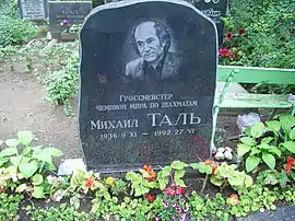 Михаил Нехемьевич Таль (латыш. Mihails Tāls; 9 ноября 1936, Рига, Латвия — 27 июня 1992[7], Москва, Россия) — советский и латвийский шахматист, гроссмейстер (1957), восьмой чемпион мира по шахматам (1960–1961), чемпион мира по блицу (1988). По образованию филолог.