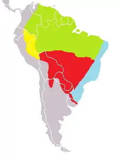 Вид населяет Южную Америку к востоку от Анд. Область распространения простирается с юга Колумбии и от Венесуэлы через Бразилию на крайний север Аргентины. Обитает в лесах, на опушках леса и в саваннах вблизи ручьёв и рек на высоте до 2000 м над уровнем моря.