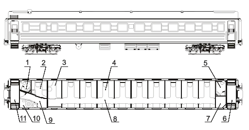 Тамбуры железнодорожных пассажирских вагонов — закрытая площадка пассажирского железнодорожного вагона между наружными и внутренними входными дверьми[11][12][13][14]. Предназначены для защиты от проникновения в салон вагона наружного воздуха, шумоизоляции. Обычно каждый тамбур имеет 3 наружные входные двери (по бокам вагона и торцевую) и 1 внутреннюю дверь в салон вагона. В тамбурах выделялось место для курения. Различают «рабочий тамбур» — со стороны служебного купе проводников в плацкартных, купейных вагонах, вагонах СВ, люкс, ресторанах и у кабины машиниста в вагонах пригородных электричек. С рабочего тамбура производится топка котла для обогрева вагона на неэлектрифицированных участках железной дороги. Также в тамбурах оснащено место для хранения запаса топлива (угля, дров). Тамбуры оснащены стоп-кранами экстренного торможения и ручным тормозом для остановки вагона в случаях расцепки от состава или неисправности пневматической системы экстренного торможения.