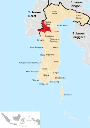 - Letak Geografis (индон.) (недоступная ссылка). Официальный сайт округа Тана-Тораджа. Дата обращения: 23 января 2014. Архивировано 2 февраля 2014 года.