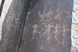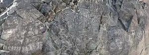 Древние каменные резьбы (петроглифы), найденные в небольшом ущелье в Танбалы