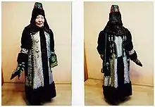 Представлял он собой изделие из сыромятной кожи (ро́вдуги)[2] с меховыми вставками в верхней части рукава. Талия была декорирована металлическими украшениями, по бокам присутствовали разрезы. На данный момент такой костюм уже не носят.