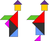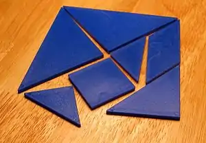 Танграм (кит.七巧板, пиньинь qī qiǎo bǎn, букв. «семь дощечек мастерства») — головоломка, состоящая из семи плоских фигур, которые складывают определённым образом для получения другой, более сложной, фигуры (изображающей человека, животное, предмет домашнего обихода, букву или цифру и т. д.). Фигура, которую необходимо получить, при этом обычно задаётся в виде силуэта или внешнего контура. При решении головоломки требуется соблюдать два условия: первое — необходимо использовать все семь фигур танграма, и второе — фигуры не должны накладываться друг на друга.