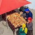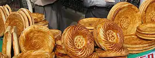 Несколько видов тандырных лепёшек, которые имеются на рынках города Алма-Ата.