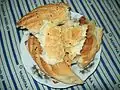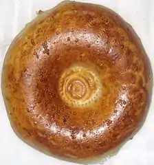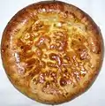 На пшеничной муке замешивают (кислое) дрожжевое тесто настаивают его и дают подняться. Поднявшееся тесто разминают и придают ему форму лепёшки, в центре делают углубление в нём накалывают небольшие дырочки.