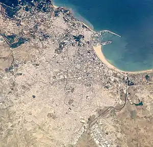 - новый город, простирающийся от городского пляжа и морского порта на севере до холмов на юге и от медины на западе до района Малабата на востоке;