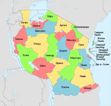 Танзания делится на 30 областей[9] (суахили мкоа):