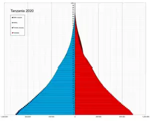 По данным на 2019 год население страны составляет около 60 млн человек. Население размещено довольно неравномерно. Около 80 % жителей страны проживает в сельских районах. Крупнейшим городом Танзании является Дар-эс-Салам, в котором проживает более 4 млн человек. В стране проживает около 120 различных этнических групп, наиболее многочисленные из которых: сукума, ньямвези, джагга, нгонде, мхая, хехе, бена, гого и маконде, курия, чагга, ваха, ниатуру. Большая часть этнических групп принадлежит к группе народов банту, часть относится к нилотам и койсанским народам. Небольшая доля населения Танзании — лица индийского, арабского, европейского, китайского и другого происхождения.