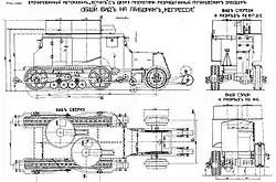 Инженер Н. К. Лисяков принял в этих опытах самое горячее участие. И вот однажды вечером он явился ко мне, чтобы доложить о сделанном им изобретении подвижной машины, назначение которой было, по его словам: «двигаться впереди штурмующих и подготовлять им путь, разрушая своею тяжестью проволочные сети и другие препятствия и преодолевая траншеи и наружные рвы полевых укреплений». По своему внешнему виду эта машина, или как мы были склонны назвать её тогда, трактор, изображала им на чертеже совершенно точно агрегат, который год спустя появился в Англии как первый танк. Далее Шварц пишет, как этот проект был передан в Ставку, где демонстрировался перед «союзниками»…