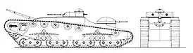![]() Боковая и фронтальная проекции танка Сиркена, 1933 год. | |