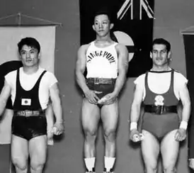 ![]() Кэндзи Онума, Тан Хоу Лян и Хенрик Тамраз на Азиатских играх 1958 года в Токио | |