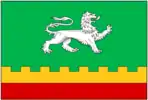 Флаг представляет собой прямоугольное зеленое полотнище со стенозубчатой оконечностью , горизонтально пересеченной желтым и красным, обремененное в зеленом поле шествующим в левую геральдическую сторону серебряным леопардовым львом.