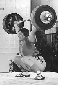 ![]() Леонид Тараненко выполняет рывок. 1986 год | |