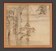 - 神坂雪佳筆 竹波図襖 Bamboo Grass and Waves. Metropolitain Museum of Art.