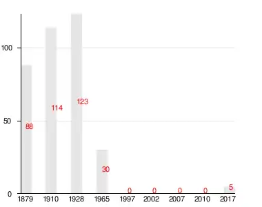 Число жителей по семейным спискам 1879 г.: 38 м. п., 50 ж. п.; по приходским сведениям 1879 г.: 26 м. п., 41 ж. п.[3]