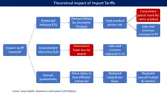 Влияние импортного тарифа заключается в повышении цен, занятости и доходов в защищенных секторах промышленности, одновременно уменьшая их в незащищенных, главным образом потому, что потребители, которые тратят больше на товары в защищённых отраслях, меньше тратят в незащищенных[14].