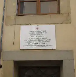 - Во Флоренции открыта мемориальная доска на доме, где жил Тарковский — РИА Новости, 29.12.2006