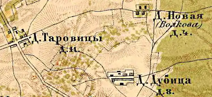 ТАРОВИЦЫ — деревня владельческая при колодце, число дворов — 9, число жителей: 39 м. п., 20 ж. п. (1862 год)[11]