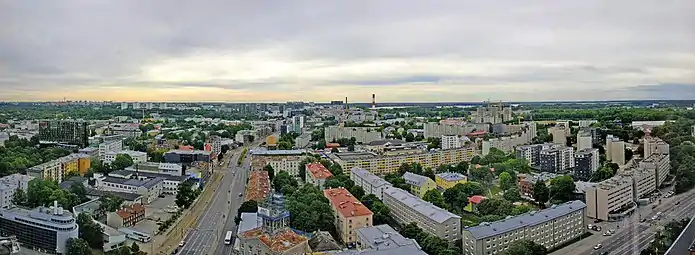 Вид на микрорайоны Торупилли (слева) и Кельдримяэ (справа), между ними Тартуское шоссе