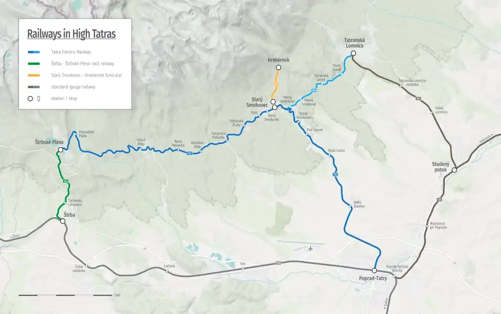 - Попрад — Стары Смоковец — Штрбске-Плесо (29,1 км)