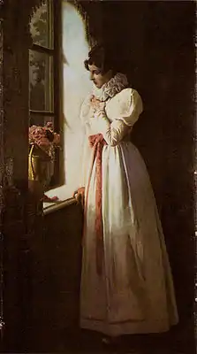 - Одна из барышень Тригорского[16][17] , например Анна Петровна Керн[18] или Евпраксия Вульф . День именин Евпраксии приходится на Татьянин день 12 января. Но Ольга и Татьяна обрисованы поэтом в Одессе, до его ссылки 1824—1826 годов. До этого он был в Михайловском в июле—августе 1817 года, когда «молодым Вульф-Осиповым было 8—12 лет; в поле зрения Пушкина могла быть только Анна Николаевна Вульф, но трудно найти женщину, характерологически менее похожую на Татьяну Ларину»[15].