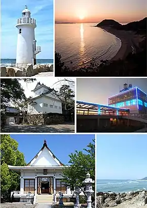 ![]() Сверху вниз, слева направо: Маяк Ирагомисаки, мыс Ираго, Замок Тахара, Смотровая площадка на горе Дзао, Храм Кадзан, Побережье Акабане | |||||