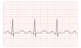 - Желудочковая форма даёт изменённый комплекс QRS (аналогичный желудочковой экстрасистолии или блокаде ножки Гисса).