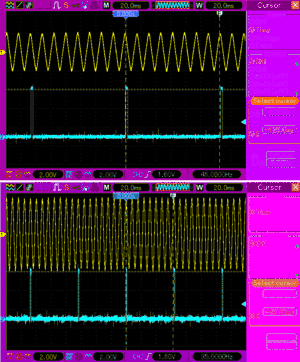Такой способ определения частоты не очень точен из-за зависимости от температуры, зазора между ротором и статором, от изменений магнитного потока магнита ротора при старении, а также из-за влияния частотной интермодуляции на реактивные элементы цепи. Но, в ряде случаев, данный способ оправдывает себя, компенсируя недостатки простотой схемы управления.