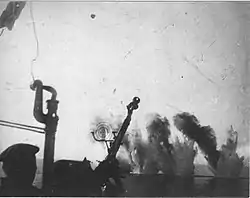 - Как оказалось, краснофлотца Лаушкина сбросило взрывной волной с палубы в море, он несколько часов провёл в воде и был спасён проходившим мимо катером; через несколько дней вернулся из госпиталя на лидер.