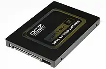 Твердотельный накопитель (англ. Solid-State Drive, SSD) — компьютерное энергонезависимое немеханическое запоминающее устройство на основе микросхем памяти, альтернатива жёстким дискам (HDD). Наиболее распространённый вид твердотельных накопителей использует для хранения информации флеш-память типа NAND, однако существуют варианты, в которых накопитель создаётся на базе DRAM-памяти, снабжённой дополнительным источником питания — аккумулятором[1]. Помимо собственно микросхем памяти, подобный накопитель содержит управляющий контроллер.