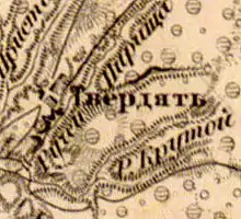 ТВЕРДЯТЬ — деревня владельческая при реке Луга, число дворов — 17, число жителей: 59 м. п., 67 ж. п. (1862 год)[11]