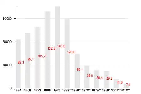 По данным переписи 1926 года в Тверской губернии тверских карел насчитывалось 140 567 человек, из них более 95 % владело карельским языком.