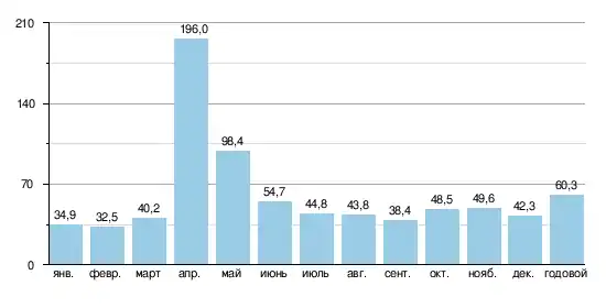 | Расход воды | 60,3 м³/с (40 км от устья) |