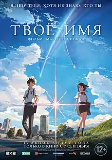 «Твоё имя» (яп. 君の名は。 Кими но на ва.) — полнометражный аниме-фильм Макото Синкая. Анимацией занималась студия CoMix Wave Films, дистрибьютором фильма выступила компания Toho. Над дизайном персонажей работал Масаёси Танака, а композитором является Ёдзиро Нода (группа RADWIMPS). Премьера состоялась на Anime Expo 2016 в Лос-Анджелесе (Калифорния) 3 июля 2016 года, премьера в Японии была 26 августа 2016[1][2][3]. Роман-новелизация, также написанный Синкаем, был выпущен 18 июня 2016 года[4]. На Anime Expo 2016 было объявлено, что фильм был лицензирован американской компанией Funimation[5]. Аниме вошло в десятку лучших фильмов 2016 года по версии BBC[6], а «Мир фантастики» назвал его лучшим аниме-фильмом десятилетия[7].