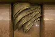 Бронзовый флаг с цитатой Ленина на пилоне (демонтирован в феврале 2014 г.)